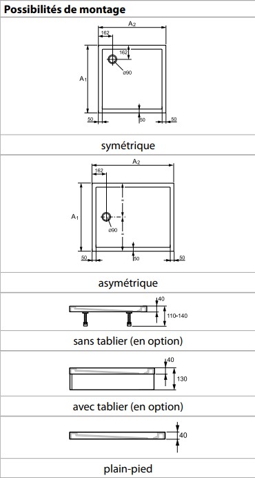 TUB DE DOUCHE HUPPE PURANO 100 X 100 BLANC
